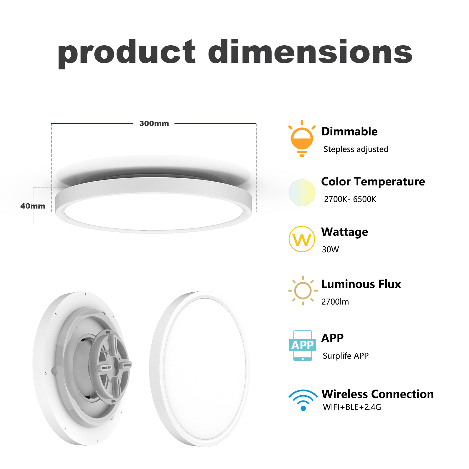 15.灯具尺寸: 300 * 25毫米